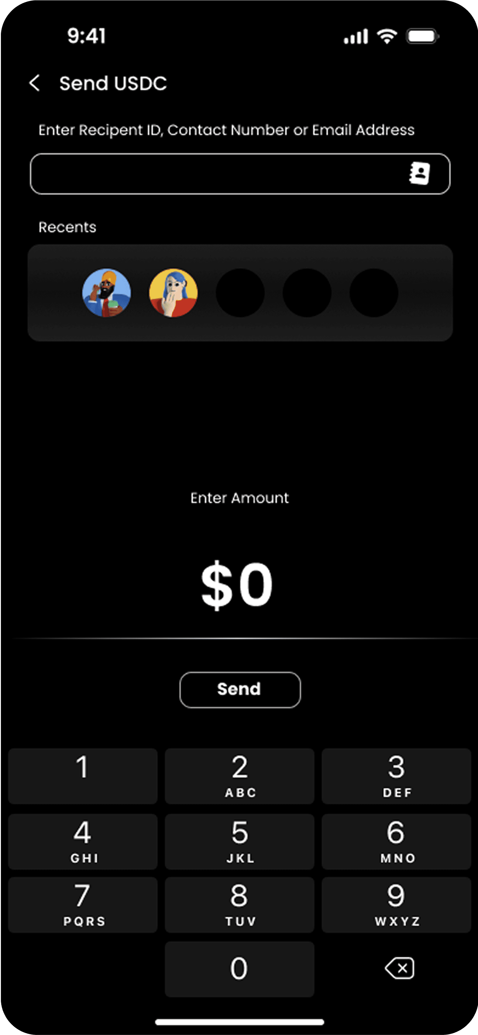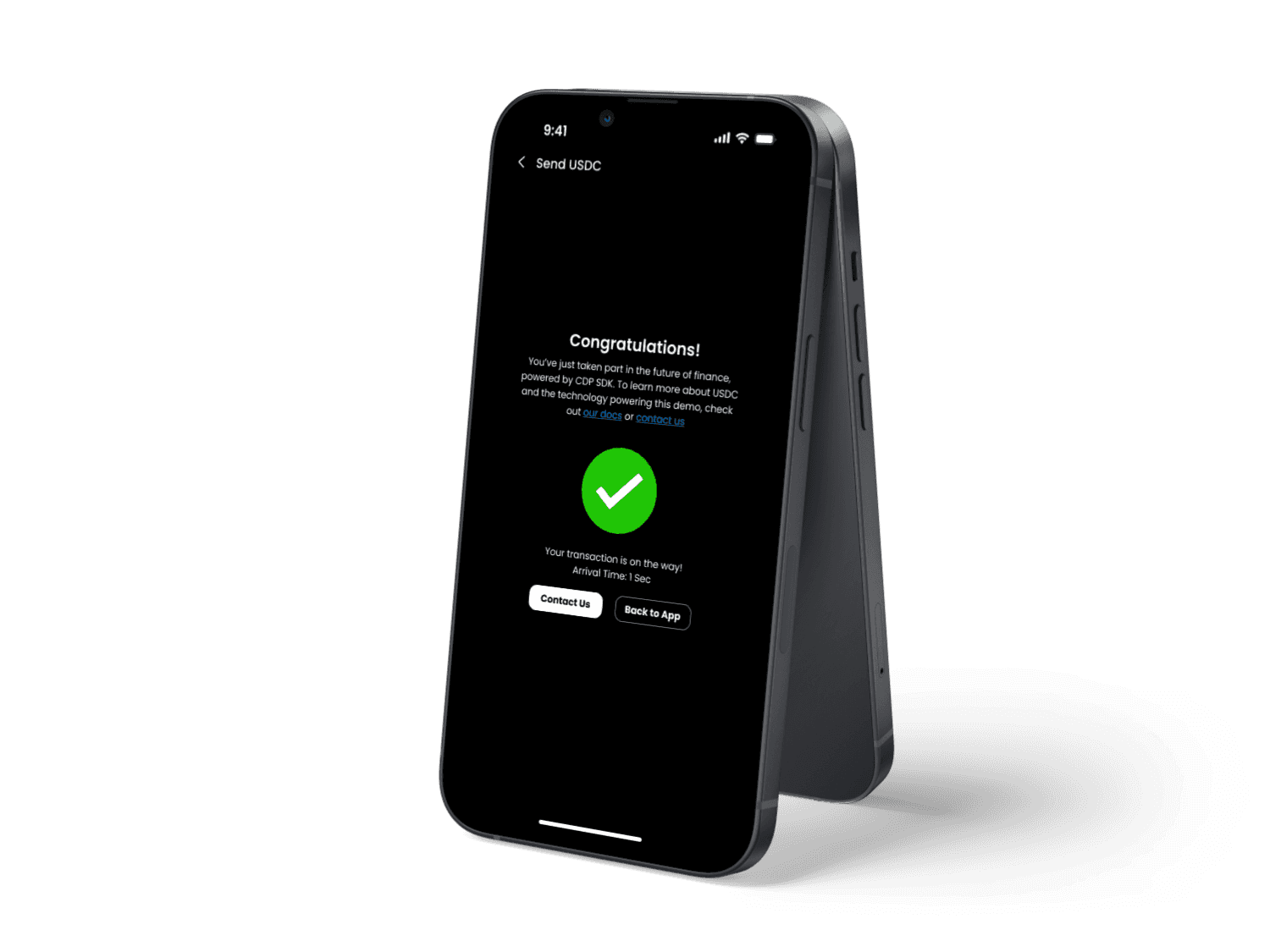 The app offers a user-friendly interface for sending and receiving USDC, allowing users to input recipient addresses and amounts with ease.