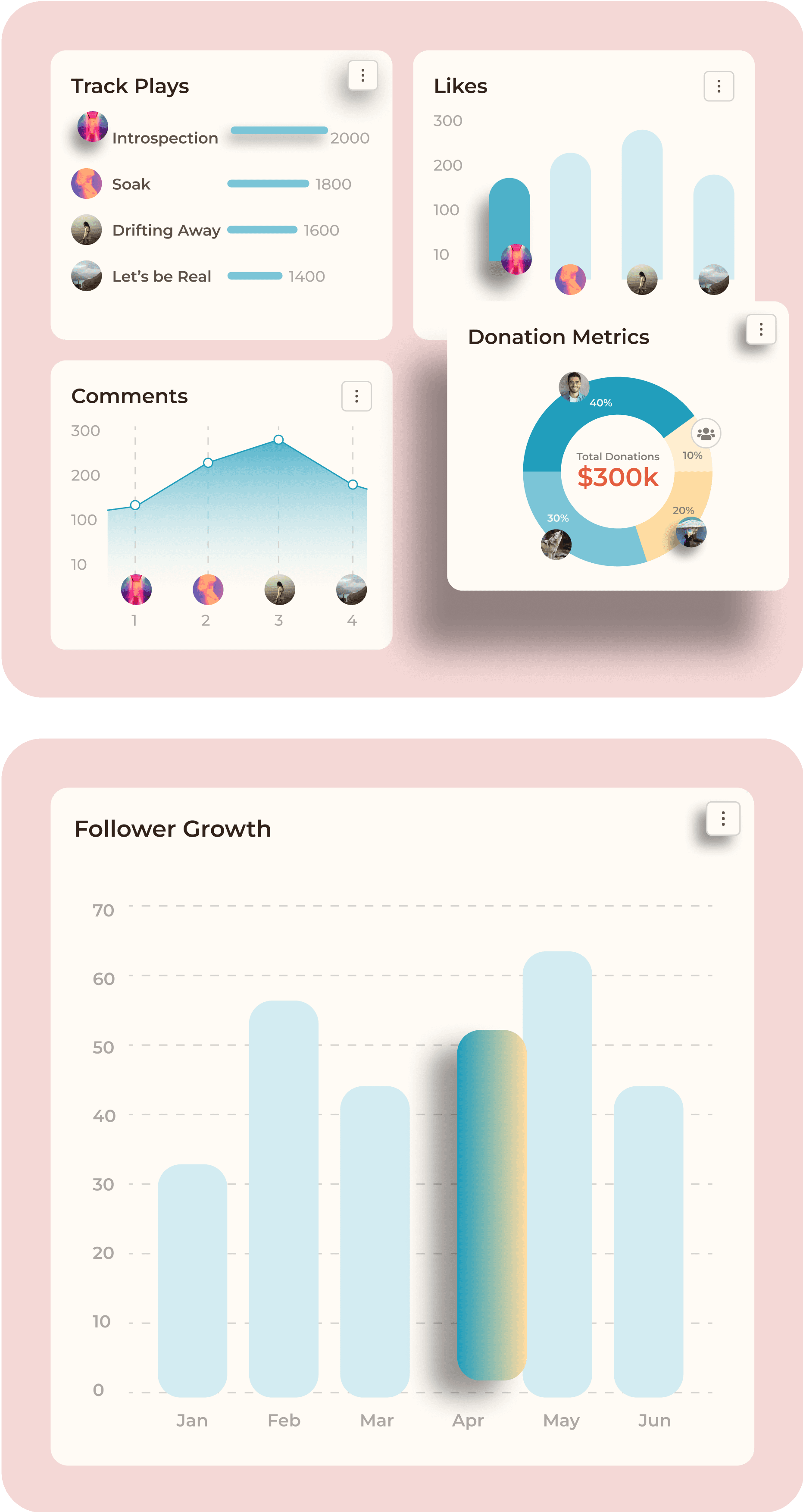 Artists get insights into plays, interactions, and donations to help grow their audience.