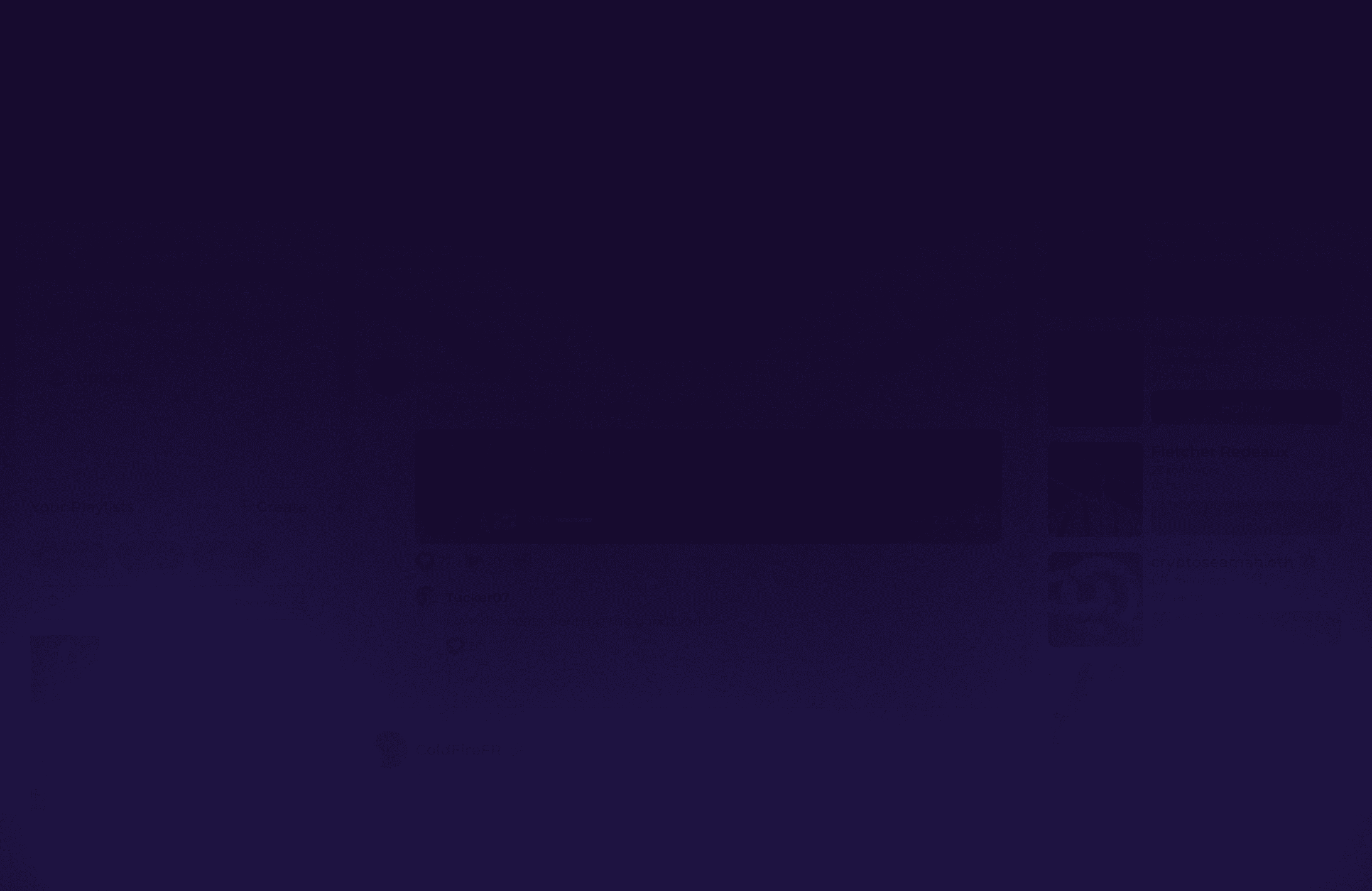 To build a space where music is the community. Whether you’re an artist uploading your latest track or a fan discovering new sounds, Sonaro makes participation seamless, social, and rewarding.